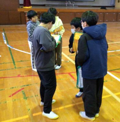 違う学校の友達に声をかけ、好きなものを伝えあい、同じだったら〇をつけていきます。
