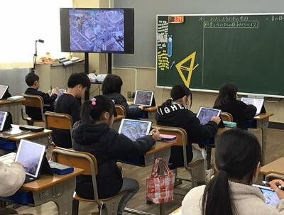 3年生は、タブレットを使って、社会の学習をしています。