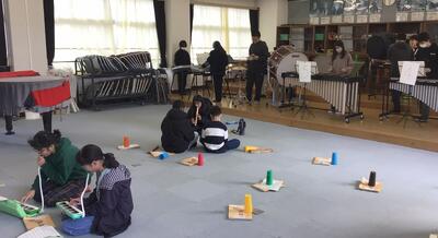 6年生は、音楽で合奏の練習をしていました。早くも「6年生を送る会」に向けての合奏のようです。