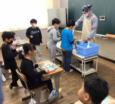 久しぶりの給食をおいしくいただきました。3学期も栄養満点の給食をしっかりと残さず食べてほしいです。