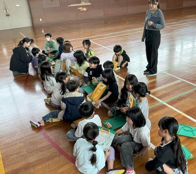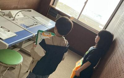 2年生が1年生を学校探検に案内してくれました。
