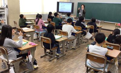 4年生は、海の環境問題について海洋高校の先生や学生さんらからお話を聞きました。