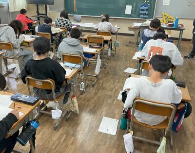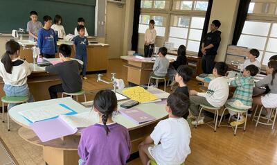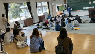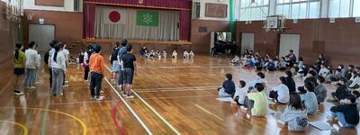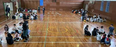 神崎浜についたら、きずな班ごとに6年生が考えてくれた遊びをしました。