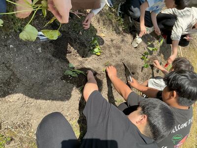 遊んだ後は、待ちに待ったお弁当です。きずな班ごとにいただきました。