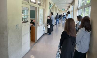 この班は、穴掘り競争を行っているようです。砂浜ならではのゲームですね。